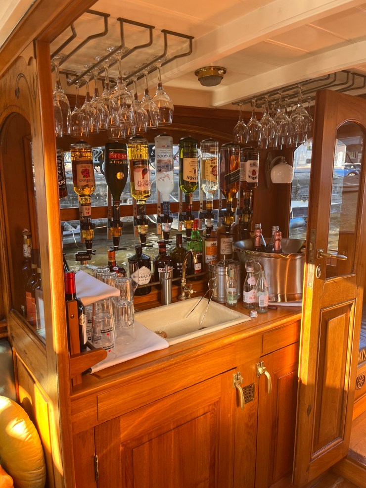 The next bar wasn’t hidden per se, just very exclusive and mobile. It was the bar aboard the boat Ivresse. Built in the early 1900’s, the Ivresse is a classic ‘Saloon Boat’, built of teakwood and mahogany, this elegant vessel was made to cruise the canals of Amsterdam. We boarded our private yacht and set off down the Herengracht canal. The bar was simple but elegant. Stocked with all the basics, I kicked off our cruise with a gin and tonic, and my bride with a glass of champagne. The captain was fun and informative, the boat elegant. We felt like movie stars as we cruised along under the bright sun and azure blue sky. I simply can’t say enough about our time aboard the Ivresse, other than its a bar you must experience!